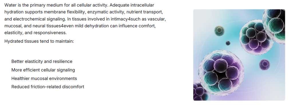 This overview presents a hydration-centered physiological framework for understanding how internal physical conditions may indirectly influence sexual wellbeing. It does not propose treatment, stimulation, or disease modification. Instead, it focuses on how basic biological support systems contribute to bodily comfort, responsiveness, and vitality.