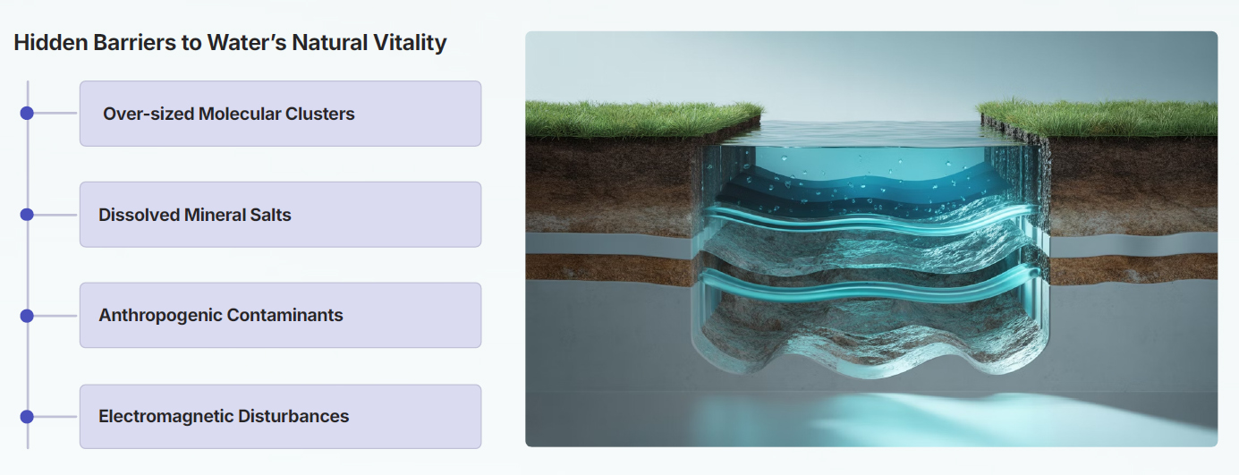 Water sustains every living system and industrial process. Yet today, its performance is quietly compromised not only by scarcity, but by invisible structural fatigue. The result: inefficiency across agriculture, industry, health, and infrastructure.